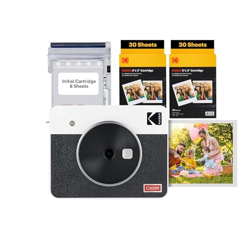 KODAK Mini Shot 3 Retro 4PASS 2-in-1 Instant Digital Camera and Photo Printer (3×3 inches) + 60 Sheets Cartridge Bundle, White