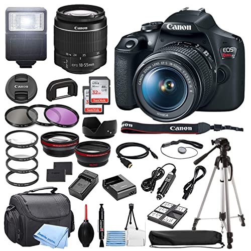 Canon EOS Rebel T7 DSLR Camera w/EF-S 18-55mm F/3.5-5.6 Zoom Lens + 32GB Memory + Case + Tripod + Filters + Accessory Bundle (Renewed)