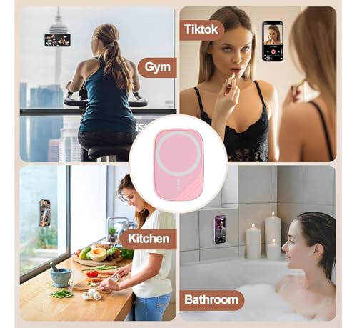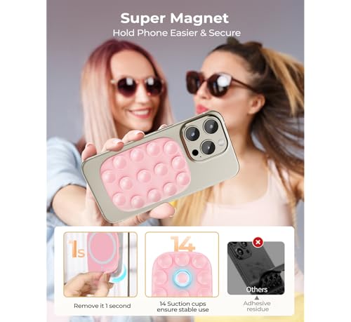 Magnetic Suction Cup Phone Mount, Shower Phone Holder for MagSafe, Phone Sticky Suction Cup Grip for iPhone 16 15 14 13 12, Birthday Christmas for Women Pink