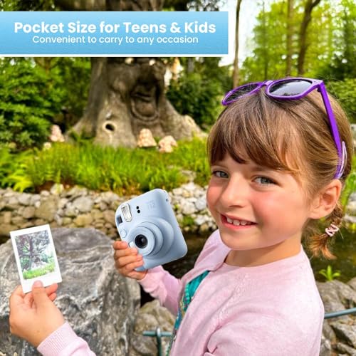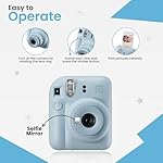 Fujifilm Instax Mini 12 Instant Camera Bundle – Includes 20 Shots Film, Custom Case, Deluxe 60-Pocket Photo Album & BluebirdSales Accessories – Auto Exposure, Selfie Mirror, Pastel Blue