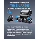 [Time-lapse Recording & Parking Mode] The dashboard camera’s time-lapse function records video at one frame per second and compresses 60-minute video intervals to 1 minute in Parking Mode to save memory card space and enable faster playback. The ACC hardwire kit is required, with a low voltage protection function, it will not drain the car battery.