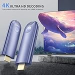 【Ultra-High Definition Picture Quality】Wireless HDMI Transmitter and Receiver supports 4K decoding and ultra-high-definition output at 1080P/60Hz, offering exceptional visual experiences for learning, business meetings, family gatherings, and gaming. Note that this product is not suitable for connecting to mobile phones or tablets. Additionally, if your computer lacks power or cannot supply power to HD, please plug the transmitter’s power into an adapter or micro power interface (5V/2A).