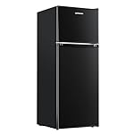 Upstreman 4.0 Cu.Ft. Mini Fridge with Freezer, Dorm Essentials, Double Door Small Refrigerator for Office, Dorm, Bedroom, Adjustable Thermostat, Large Capacity, Black-BR401