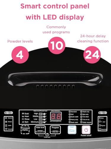 【Multi-functional Control Panel】 The washing machine comes with 10 washing programs, 4 water levels mode and 8 water level selections. All functions and operations are clearly listed on the control panel, making it easily for anyone to operate.