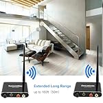 50M/160Ft Long Range Transmission: Wireless transmitter receiver use 2.4GHz technology and external antennas, higher transmission efficiency and more stable transmission, outdoor unobstructed transmission distance up to 50m (160ft), indoor transmission distance is 30-50m (100-160ft). You can enjoy music throughout the room without worrying about audio loss or interruption. (Note: Obstacles and routers will affect the transmission distance)