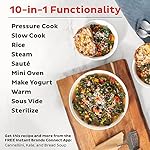 10-IN-1 FUNCTIONALITY: Pressure cook, slow cook, sous vide, sauté pan, rice, sterilizer, yogurt maker, food warmer, cake baker and steamer..Voltage : 120 volts.