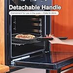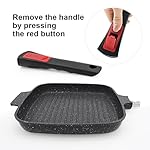 PREMIUM MATERIAL – The griddle pan is made of high quality aluminum, which can provide exceptional heat retention and distribution than traditional cast iron pan. The detachable handle is made of bakelite, which has good property of heat insulation and protects you from being burnt.