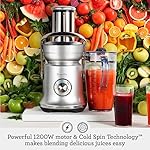 The Breville Juice Fountain Cold XL features a bigger 3.5 inch feed chute and can extract 70 fl oz of nutrient rich juice up to five times faster than a ‘cold press’ machine; Juicer equipped with Cold Spin Technology and Noise Reduction Technology