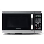This microwave oven is the ideal size for office break rooms or home kitchens. One-touch cooking programs let you cook six of the most popular food items with the touch of a button. Choose from ten power levels up to 1000. The large digital screen has a clock feature and can display a countdown timer in addition to the remaining cook time. The memory function lets you customize and save your favorite settings, and the large door has an easy-grip handle and child-safety lock.