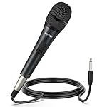 CARDIOID DYNAMIC Karaoke MICROPHONE-Wired microphone with cord for karaoke features a cardioid pickup pattern for greater gain while simultaneously minimizing feedback. The plug in microphone, music stuff, is ideal for live situations where noise cancellation is needed, which makes the handheld DJ microphone corded remarkable for presentation, wedding, conference, church, interview , solo performances stage and more outdoor events.